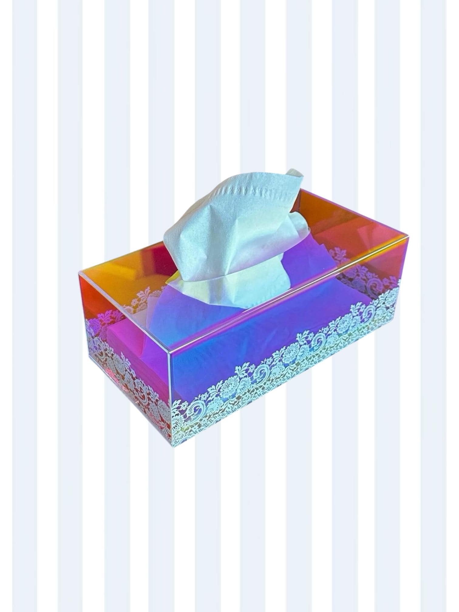 Coquette Pink iridescent Acrylic with lace pattern tissue box cover ideal for new mom or gift Girly Desk Tissue box | Preppy Vanity Decor