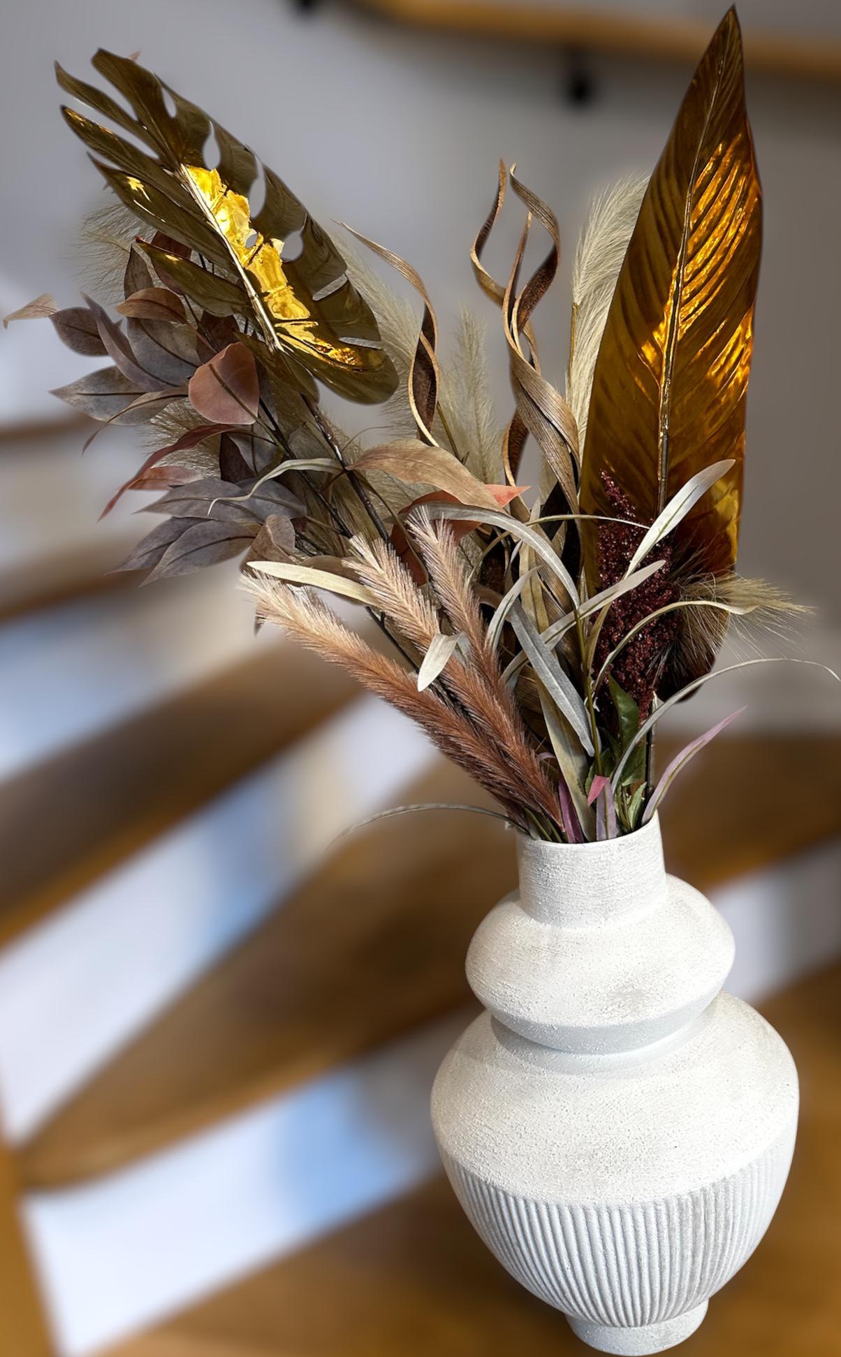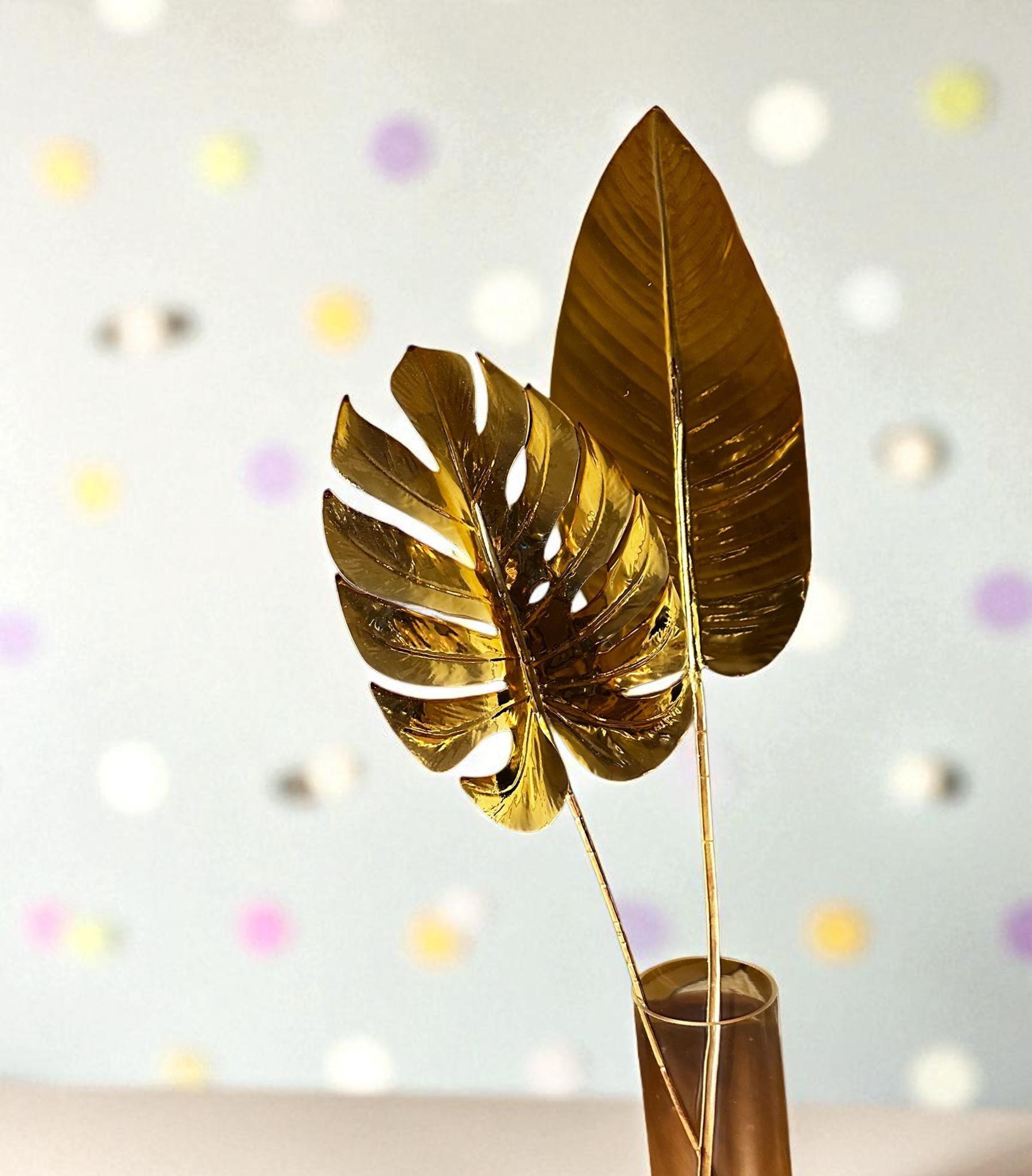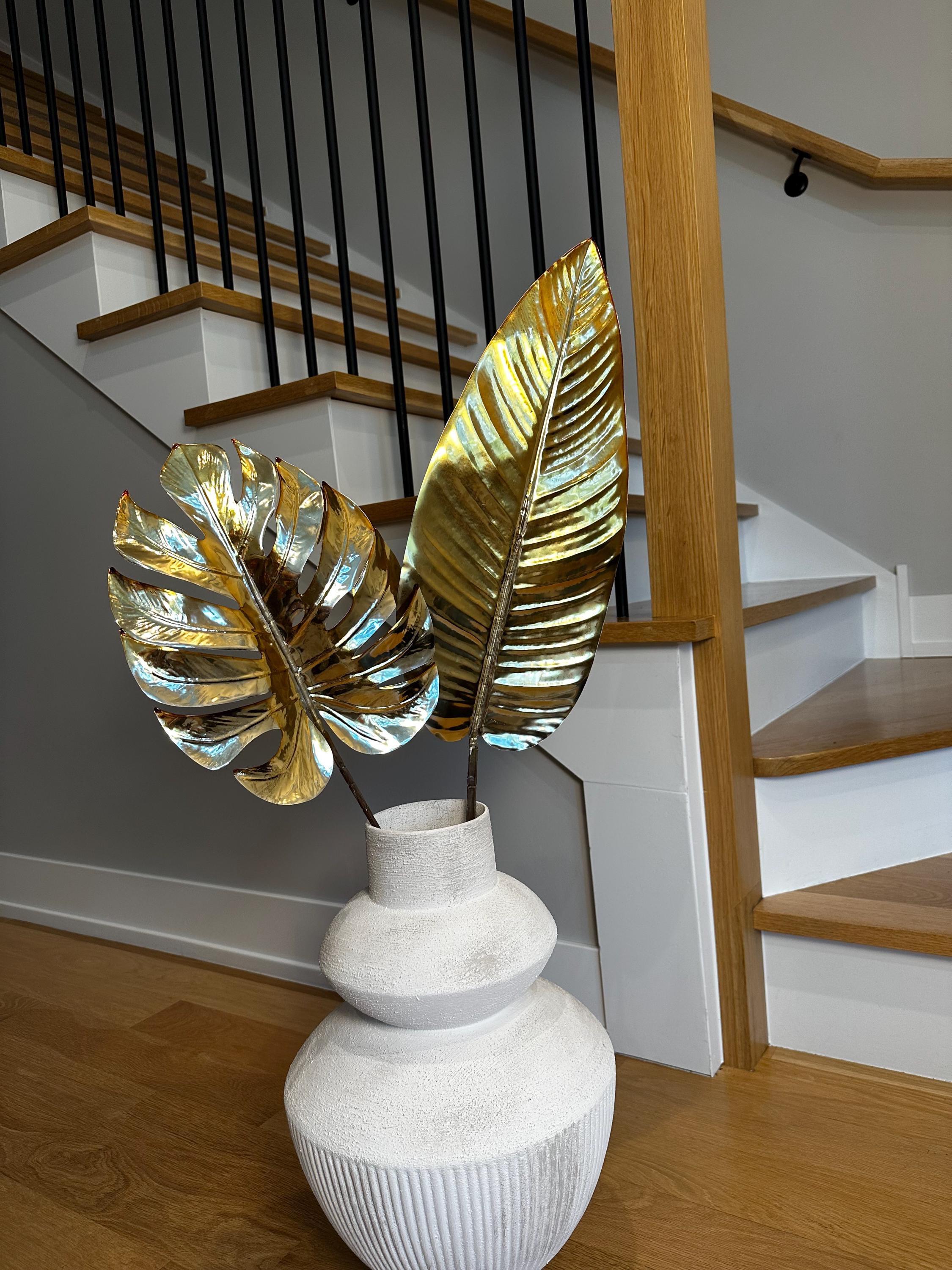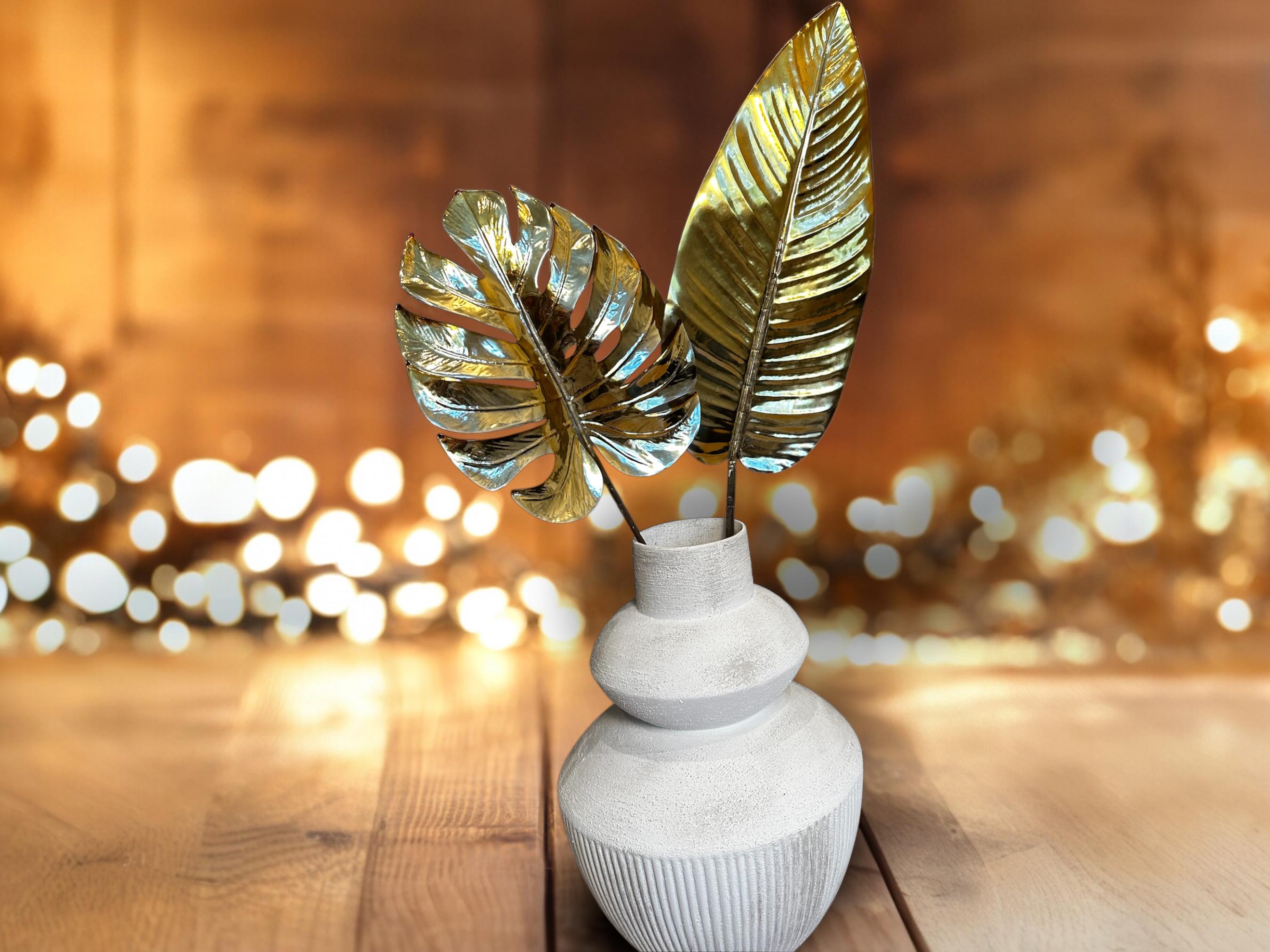 Transform your space with these oversized gold metallic leaves, a bold and modern statement piece that doubles as timeless home decor and elegant holiday styling. Handcrafted with a reflective golden finish, each leaf sculpture brings warmth, glamour, and sophistication to any room. Perfect for living rooms, entryways, dining tables, mantels, and office spaces, these versatile leaves look stunning in a vase, styled on a table, or mounted as wall art.