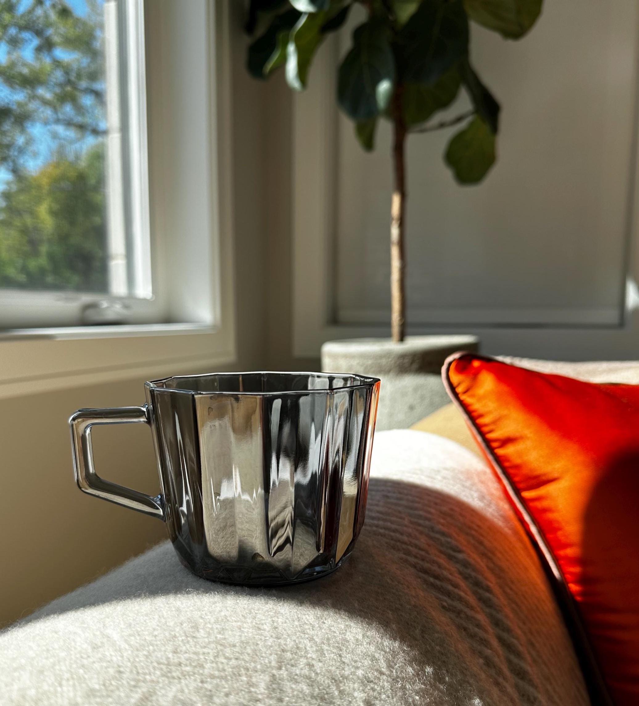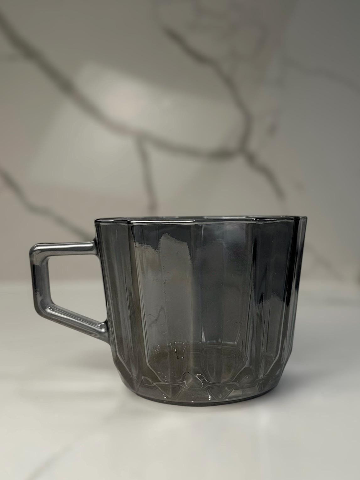Elevate your coffee or tea ritual with this elegant smoky gray glass mug. The faceted design and clear gray hue bring a touch of modern vintage charm to any table. Perfect for cozy mornings, entertaining guests, or gifting to a coffee lover, this durable glass cup balances style and functionality.