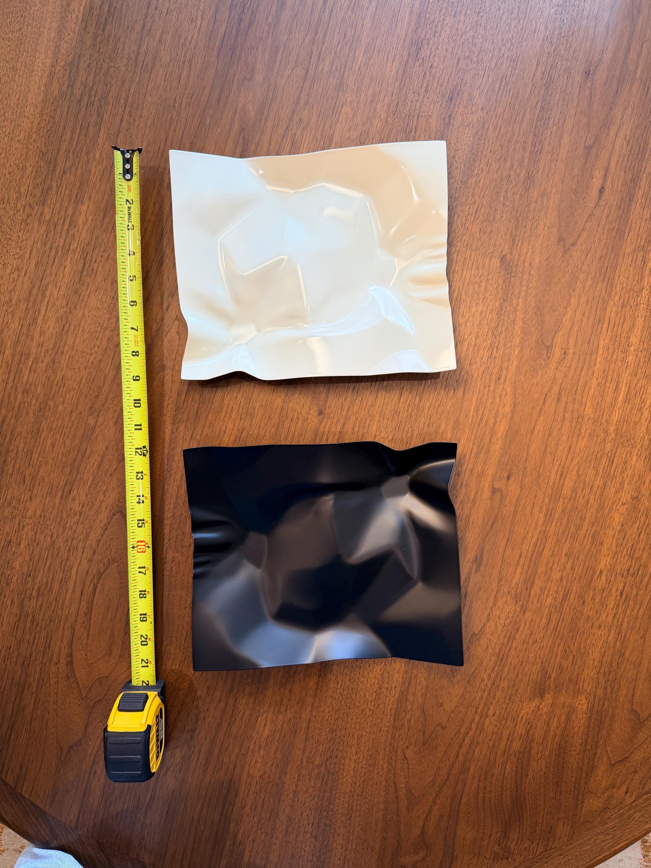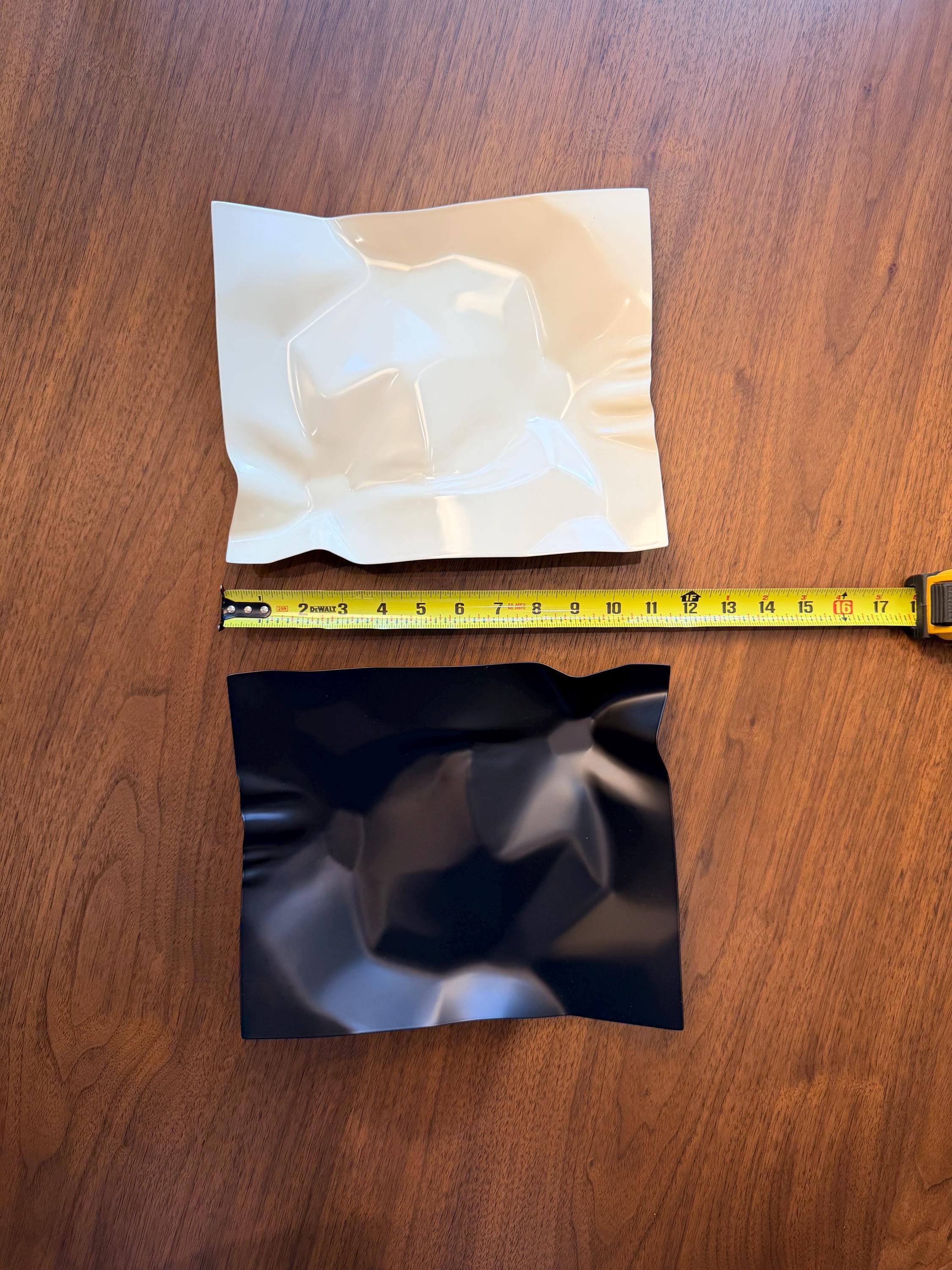 The dramatic crinkle-textured finish creates stunning reflections and dimension, making these plates perfect for decorative use such as centerpieces, snack or display trays, and styling your dining setup for the season.