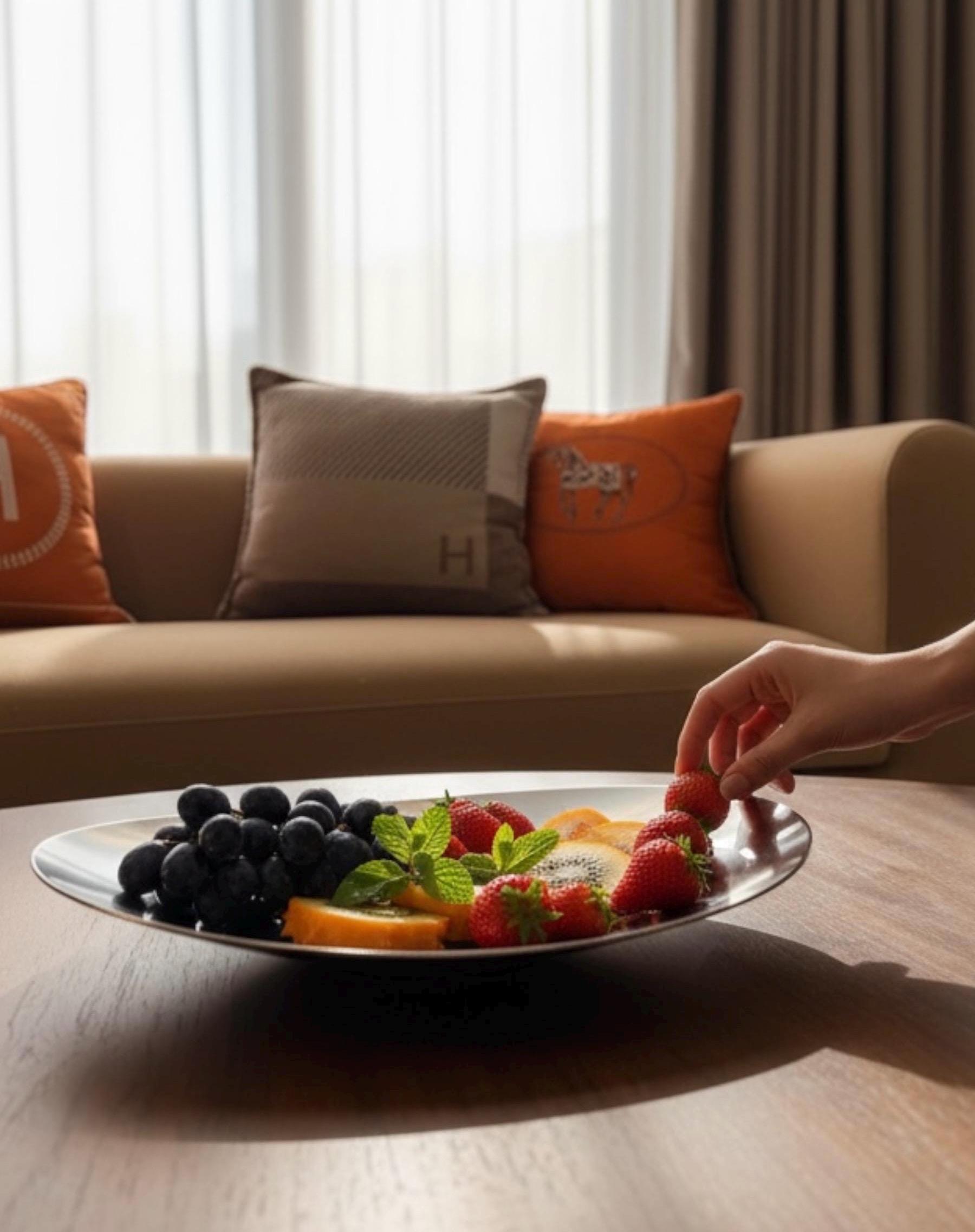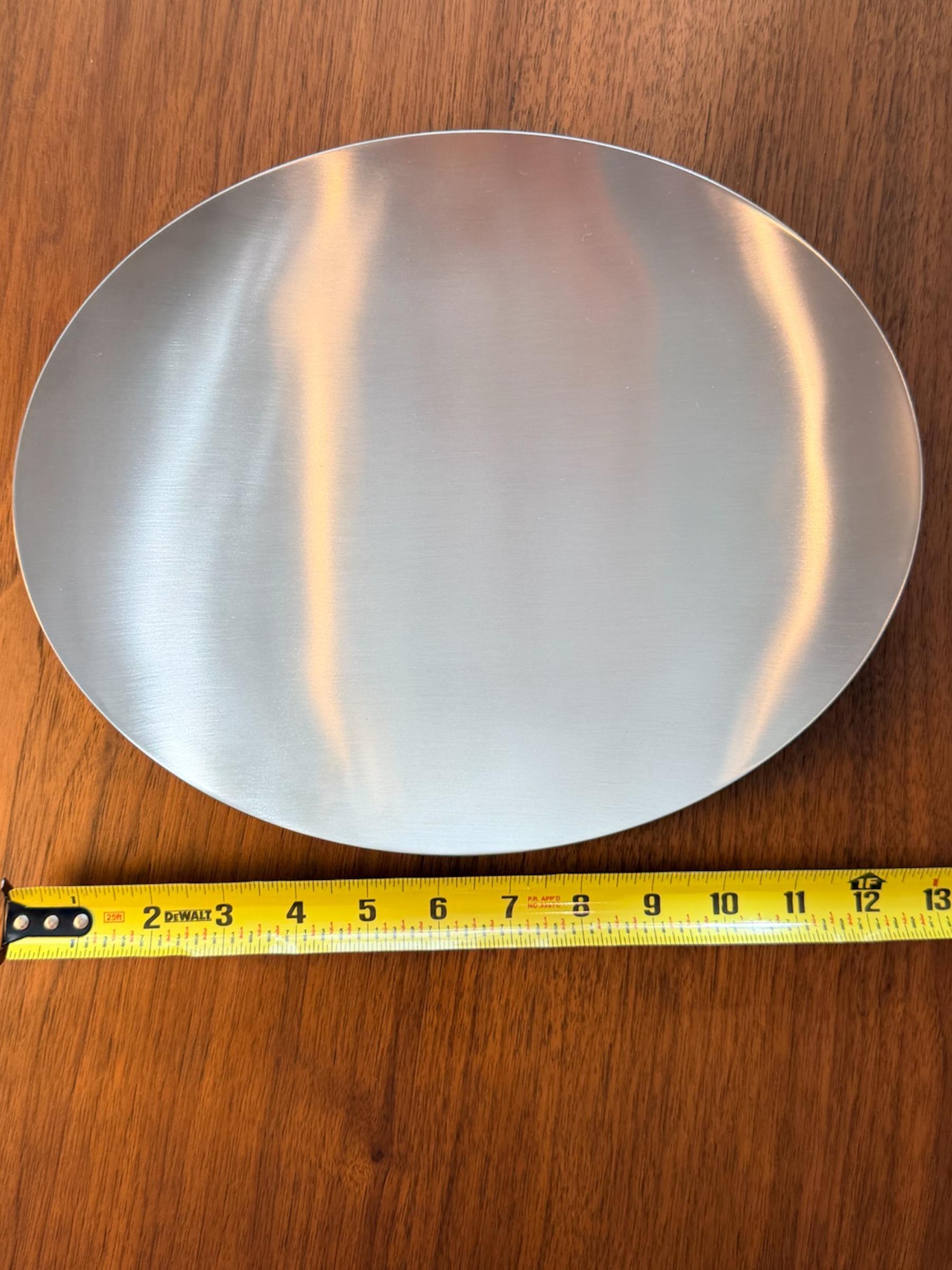 This premium steel plate features a stunning brushed finish that beautifully reflects light and elevates any space. Use as a fruit bowl, candle tray, or decorative base for your favorite home accessories.