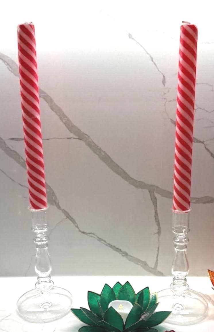 Christmas Striped Taper Candles with candle holder – Red & White Holiday Decor