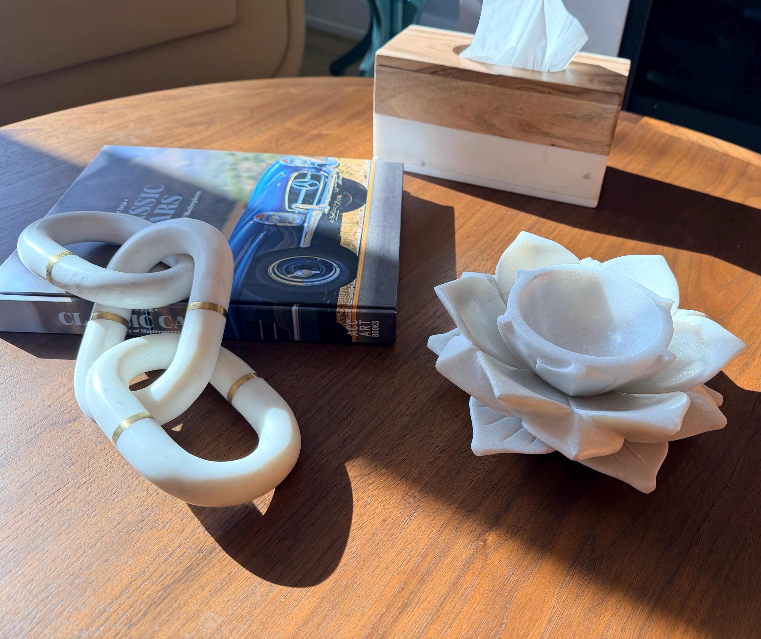 Each piece is handmade and carved from natural marble, so slight variations in veining and tone make every sculpture truly one-of-a-kind.