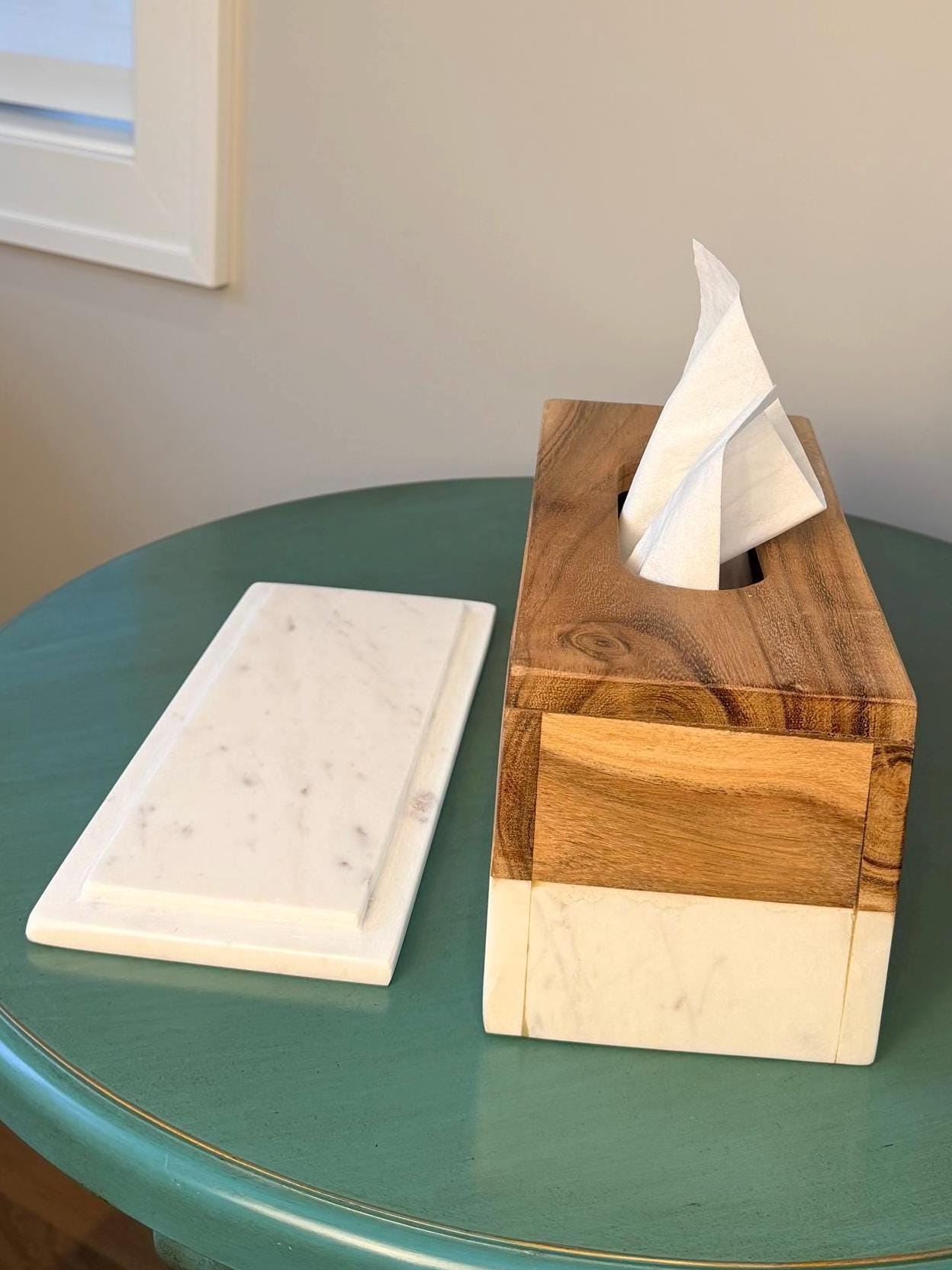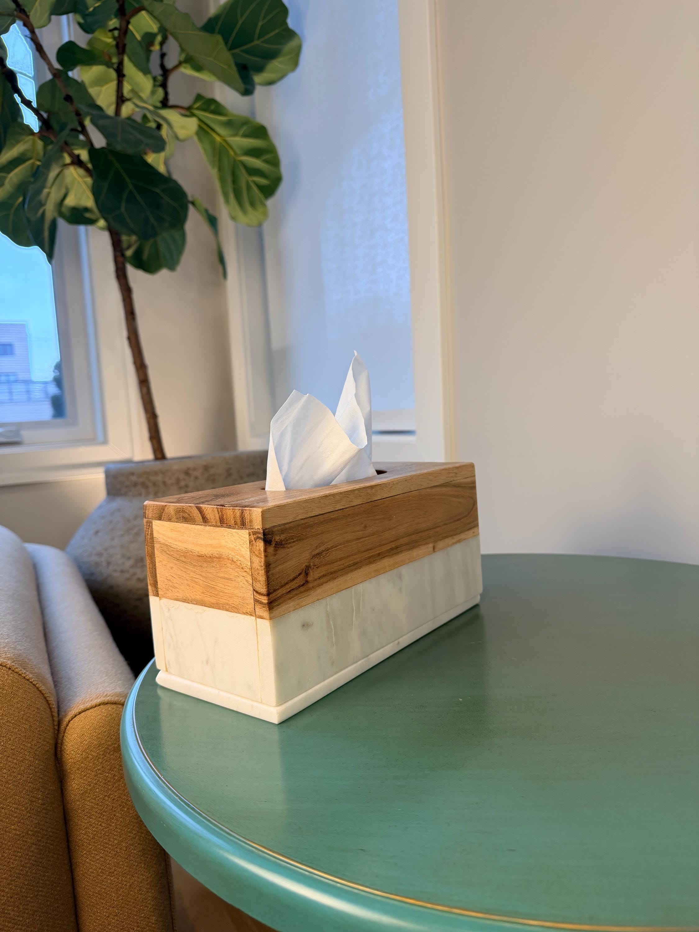 Elevate everyday essentials with this eco-friendly tissue box holder, handcrafted from natural Banswara marble and solid Acacia wood. Designed to blend warmth and elegance, this piece adds a refined, modern touch to bedrooms, bathrooms, living rooms, spas or office spaces.